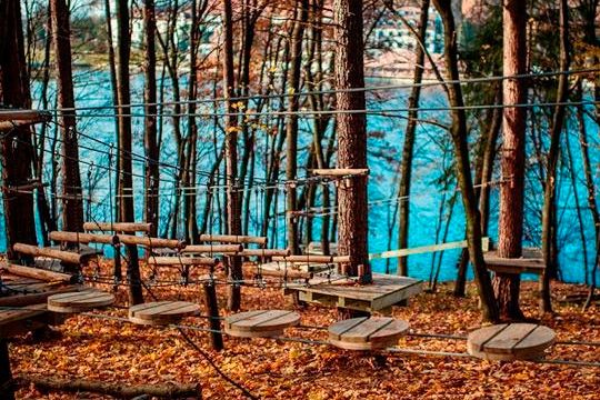Пройдіть шлях на мотузках з прикріпленими дощечками, які натягнуті на різній висоті між деревами з усілякими перешкодами і труднощами. Відчуйте як адреналін пульсує у тілі, а пригоди ваблять на авантюри.